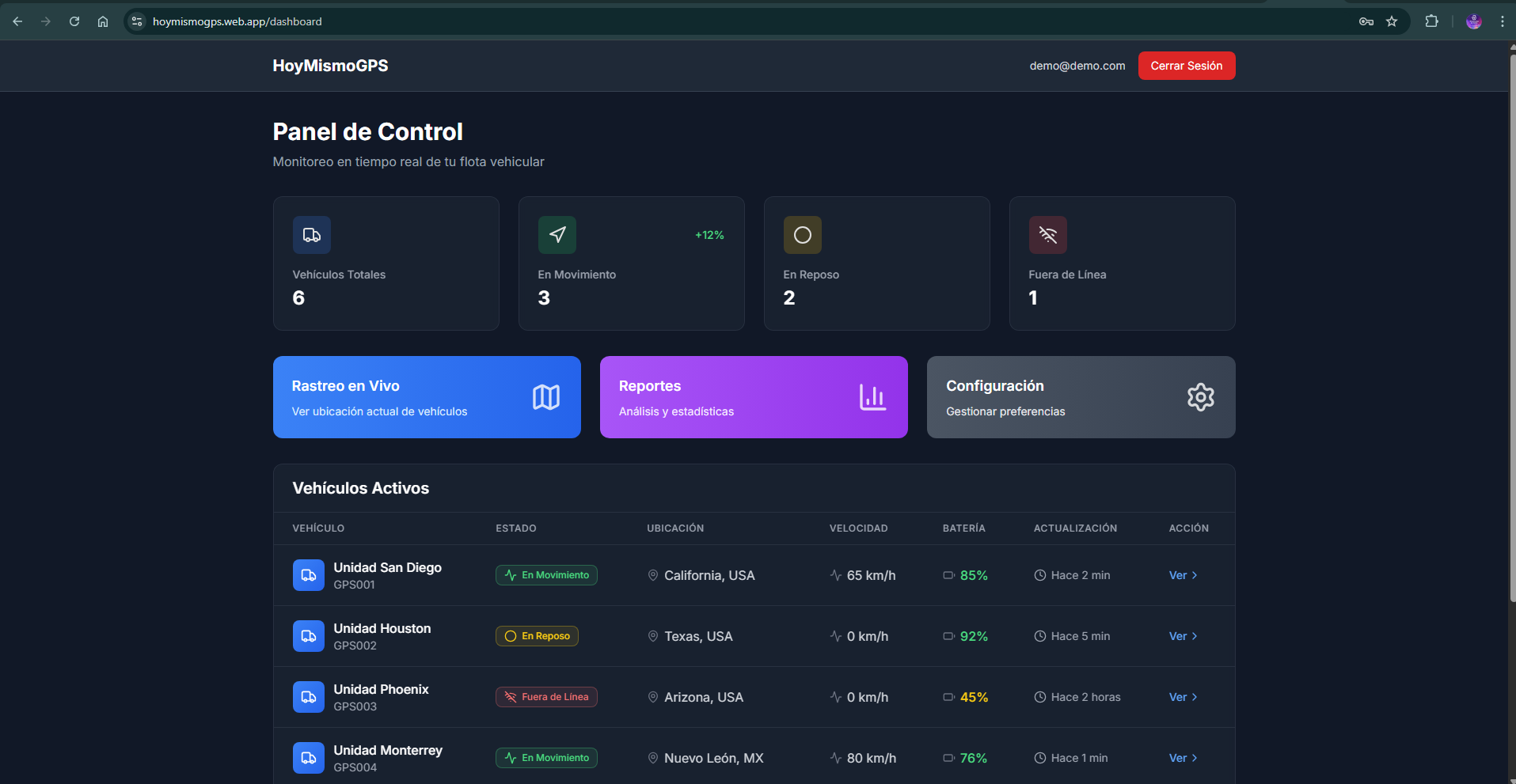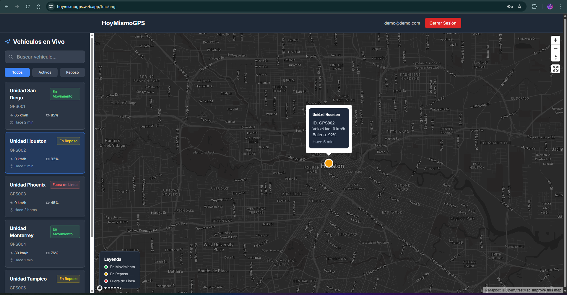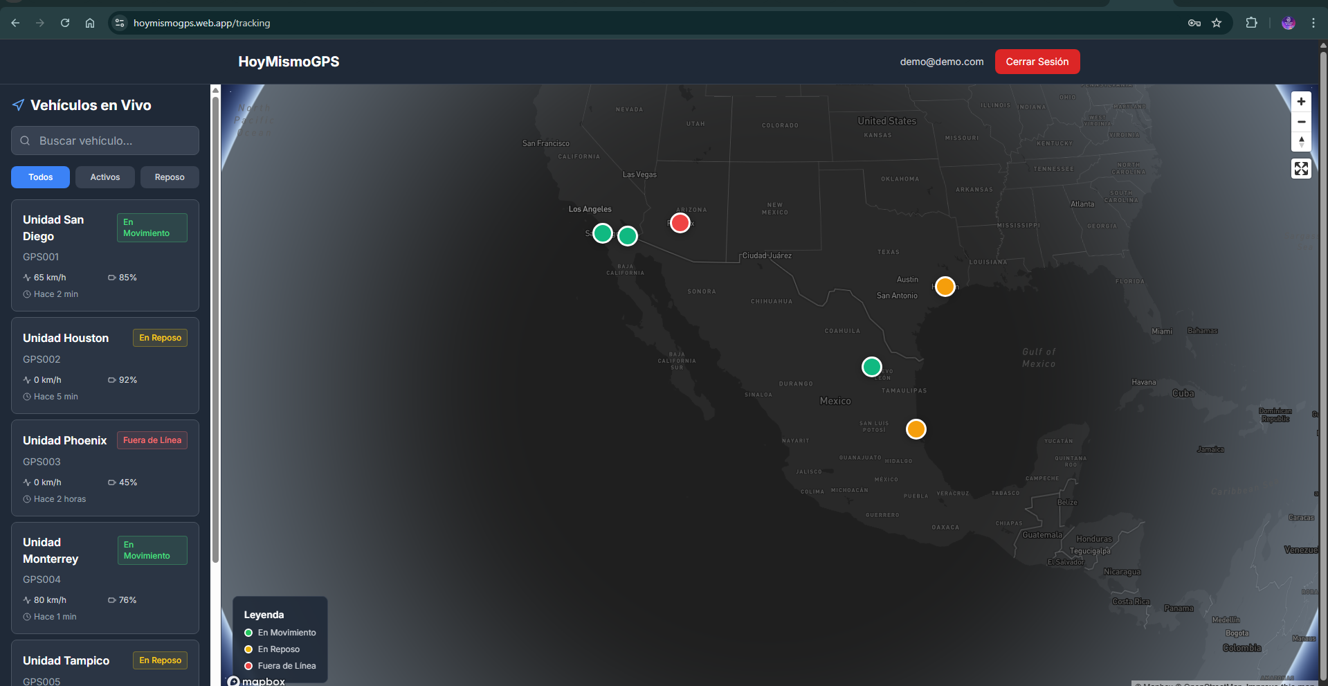 Mapbox GL (Browser)Puedo implementar una solucion similar para tu flota, adaptada a tus dispositivos y necesidades especificas.